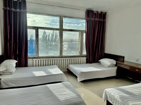宾馆干净舒适,有大型停车场,饭店,超市俱全。距离乌兰哈达火山口半小时车程即可到达。房内有电视,节目丰富,独立卫浴,房型齐全。价格实惠,交通方便,不拥堵,省际通道路边,周围有大型公园,喷泉,健身设施,可锻炼。