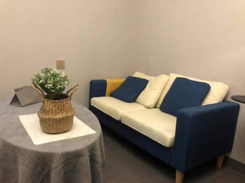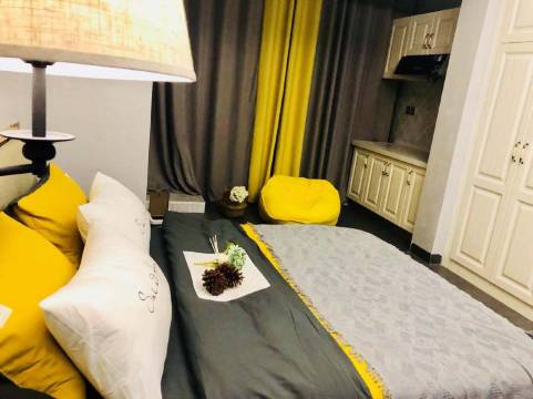 我是一个对色彩充满好奇的女孩子,喜欢做一些搭配和一些小手工,做民宿也是爱好也是一份历练,对于这个房间,我是把自己设想为客人,看到的是颜色搭配合宜的中性色调,不会显得花哨但是又色彩充实,整体以现代浅灰色为主色调,姜黄色的点缀增添了房间许多的生机,让不管是男性客户还是女性客户都会有个舒适的体验感,我最喜欢的还是那个姜黄色的懒人沙发,背景是阳台上的灰色窗帘,沙发边是一个草编花篮,给人慵懒随意的气息,希望能给到你们愉快的体验感受哦