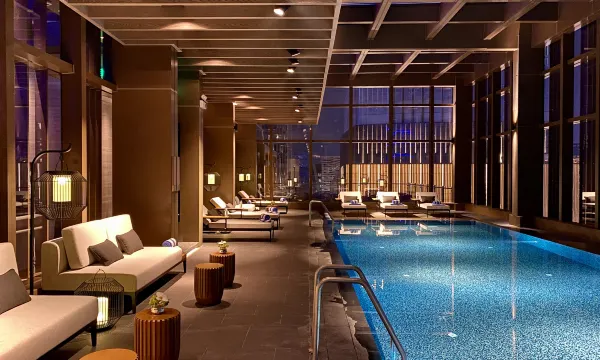 服务非常的热情礼貌,办理入住也很快。时尚高档的装修风格。环境干净舒适,安静。送的水果下午茶、还有化妆品的伴手礼,非常值。还有晚安甜水和水果。恒温泳池小朋友很喜欢,可惜室外泳池没开。出门也很方便,可以逛很多地方不用淋到雨。外卖也会帮忙送上客房。很满意的一次入住体验