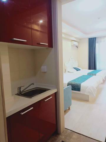 是家庭式的公寓,房间很大,朝阳,各种设施齐全,还有洗衣机,浴室热水很好。加了老板微信,入住和退房和老板说下就行,很方便。老板服务很好,有要求都会及时响应,换房间也很及时。酒店高楼层的房间还挺安静,低楼层的还是有点车开过的声音,睡觉需要安静的得住高楼层的。