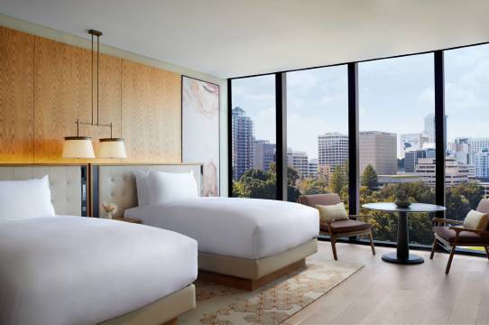 珀斯丽思卡尔顿酒店位置绝佳,坐拥天鹅河美景。服务周到,房间宽敞舒适,高空无边泳池体验超赞,是珀斯奢华住宿的首选之一。
