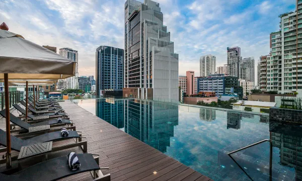 酒店住了三次,在素坤逸去siam,central world都很方便,打车特别堵建议坐摩托或BTS(门口300米)。无边泳池晒太阳的人很多,就是躺椅太少。游完泳没有可以晒泳衣的地方。