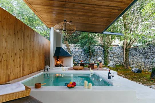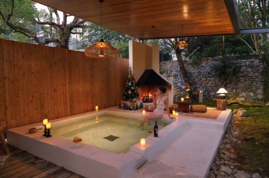 清远二十一度山居的主人,因向往简单质朴的田园生活,选择了清远这间隐藏在山野间的废弃学校,经过一番精心设计改造后,摇身变成一间现代简约的野奢民宿。周边喀斯特地貌群山环绕,早晨仙雾缭绕,晚上繁星点点。每一间都有落地玻璃窗,无论是在房间还是露台,眼前的云雾山景好像触手可及。房间的设计注重留出很大的空间以及舒适度,因此当你走进房间时,足够大的空间以及舒适的配置都能让人感到很放松自在。庭院配套6*26米的天然山泉水无边泳池,4*4米的山泉水汤泉泡池以及一个迷你阳光健身房。村里的哥哥姐姐们,也将用当地的好食材,用心烹饪美味的菜肴,带给你质朴和简单的好味道。山居还可提供瑜伽房、会议室及更多贴心的服务。