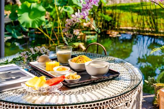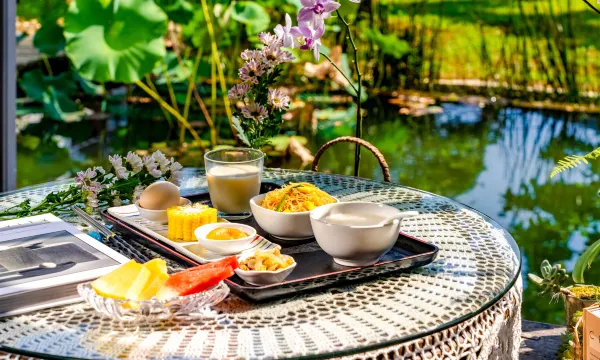 环境很好,适合避世放松。房间很干净,泡池有一次性泡澡袋。阳台看风景很好。院子里有泳池,有秋千,不会无聊。早餐也很干净卫生,晚餐我们选了点菜,荷叶排骨好吃😋。猫猫狗狗都很可爱,特别是小八。下次约朋友再去