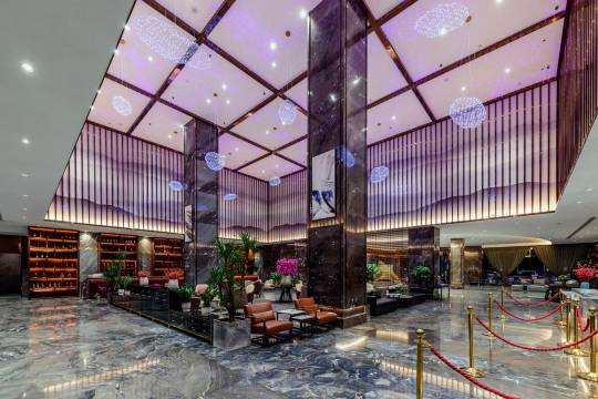 以前开会住过一次,感觉不错,这次带家人来玩住了2天,卫生干净整洁,服务态度很好,大厅看起来非常豪华,儿子最爱,早餐厅的服务员态度很好,去吃早餐晚了,就吃了点鸡蛋炒粉和果汁,服务员还问需要加什么吗
