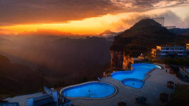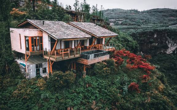 酒店位于贵州铜仁朱砂古镇,依托当地山水环境,结合悬崖泳池、高空体验,打造一座依山而建、集旅游、休闲、商务于一体的综合性酒店。云居总占地45亩,包含15幢独立客房,中西餐厅,酒店套房,茶艺,康体、露天空中泳池、会议室、多媒体影音室等功能。放下云居是一处带给游客心灵平静的世外桃源,从隐居于世的独栋别墅、观看群山的无边际泳池、悬崖茶室、特色餐点到私人管家服务,都能在自然与人文之间达到平衡。从入住放下云居的那刻起,便放下尘忧、体悟六根清净之念,带给宾客非凡无忧的生活方式体验。