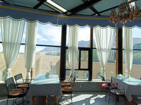 餐厅是全景阳光房,一边看雪山一遍品尝美食,非常棒。