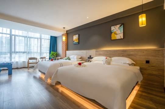 房间很大,很干净,前台小姐姐说话很温柔哦,,离火车站很近,床垫被子都很舒服,小孩子玩得很开心,,下次回去还住这,