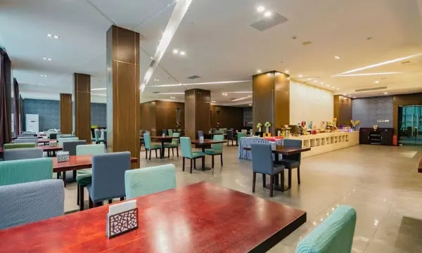 设施:设施挺新的,房间有书桌,临时写文章也方便,小茶几沙发都有!早餐种类繁多,有凉皮和饺子臊子面,也很适合差旅