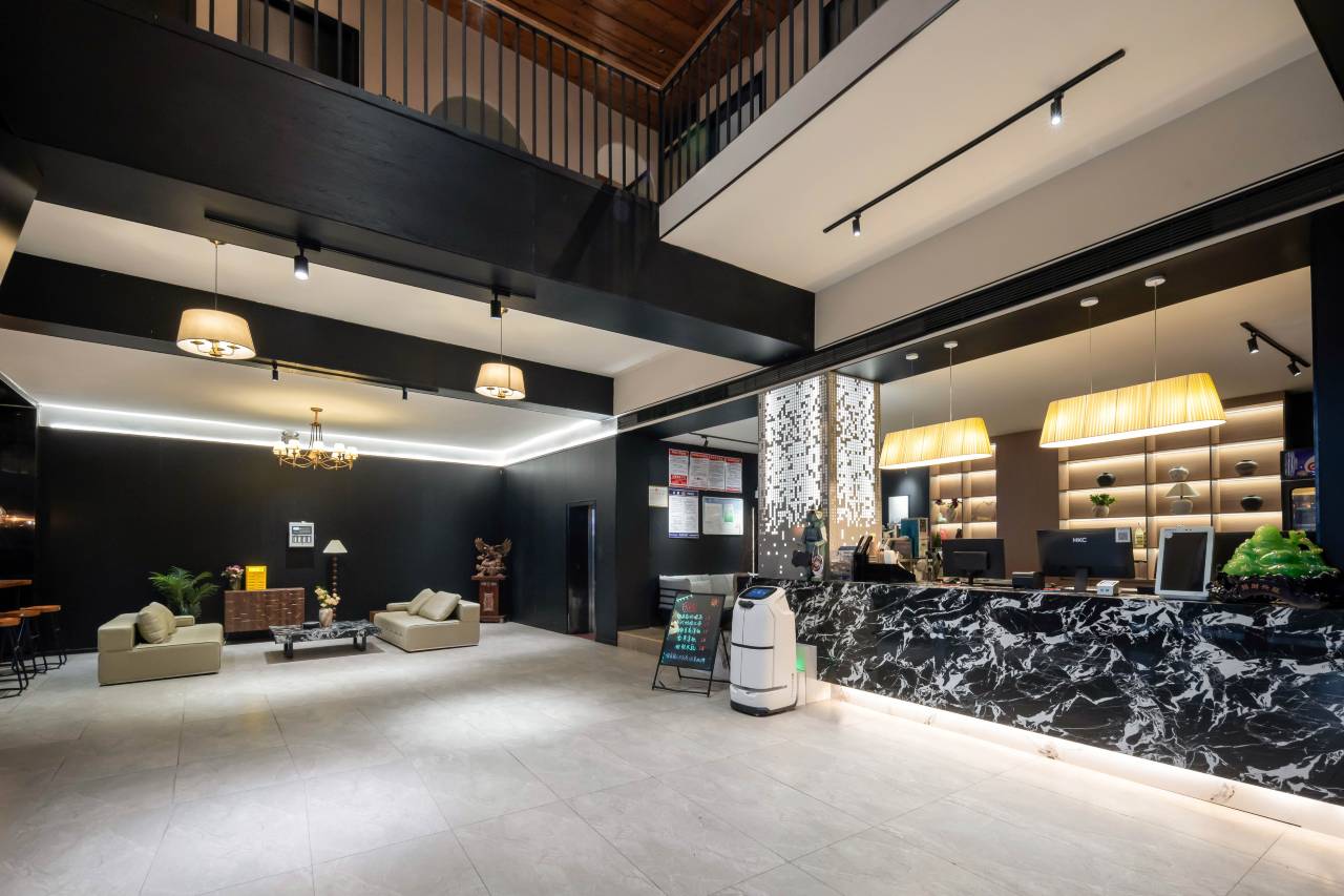 本店位于攸县吉兴路122号,靠近河边,环境安静,车流量少。门口随时可打到的士,不远处有公交车站,交通方便。酒店大厅设有水吧,二楼设有茶座包厢,丰富客人的休闲时光。3至6楼是客房,本店客房安装智能系统,控制空调,灯光,窗帘,给客人温馨便捷的入住体验!