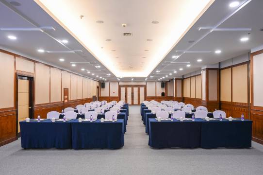 酒店附设6间大小高级会议室、典雅的中/西餐厅、17间风格各异的餐饮包厢、能容纳200余人的多功能宴会大厅、大堂吧、商务中心和精品商场等服务设施。