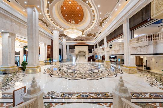 大堂非常的富丽堂皇,环境整洁,前台人员服务热情,酒店还有游泳池,健身房等设施,自助早餐品类丰富,体验不错
