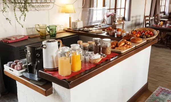 您可以去Table d'Hôtes家庭餐馆享用美味的素食菜,还可在这里的酒吧/酒廊小酌几杯,欣赏花园景色。此外,咖啡馆也提供餐饮服务。每天一次免费招待会举行免费招待会,您可以借此结识其他住客。每日 08:00 至 11:00 提供免费的当地美食早餐。