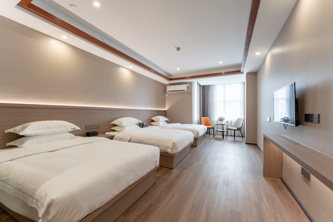 酒店客房豪华时尚大气,宽敞舒适温馨。商务大床房、商务标准间、豪华单人房、豪华家庭套房等多种房型供您选择,客房面积从32、34、37、47平方米不等,环境优美,房间设施齐全,并且还为客人提供提供餐服务、叫醒服务、商务中心、会议服务、旅游服务、前台贵重物品保险柜、停车、大巴。公共区域Wi-Fi等服务设施,以满足您的需求,是您商务旅行、家庭度假的理想选择。