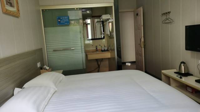 宾馆位于建湖汽车站附近,出行方便门口就是公交站点。房间虽不大但设施齐全,坐便淋浴吹风机电视机都有,早餐有稀饭煎饼油条鸡蛋和咸菜萝卜干。老板和服务员待客都很热情周到,还提供家庭用拖鞋,雨天可借伞出行,我俩都是70多岁的老头老太,想吃什么早点只要提出来老板都会满足,我俩住的是双床房,一个1.5米一个1.2米,被褥很柔软舒适。总之一切都很好,太满意啦!