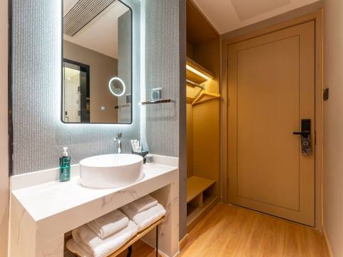 紧邻枣庄峄城区职业中专、山东省枣庄市一中学,地理位置优越, 酒店配套:健身房、洗衣房、免费停车、机器人服务,智能客控。 交通枢纽: 距离枣庄西站(高铁站)40分钟车程。 距离枣庄东站(火车站)30分钟车程。 距离枣庄站24分钟车程。 距离枣庄市立医院20分钟车程。 距离冠世榴园风景区9分钟车程。 距离台儿庄古城30分钟车程。酒店以时尚品质的客房产品,以“商务、休闲、娱乐”为一体的灵动空间,满足宾客旅居需求。以“用心,为你更好”的品牌理念传递品牌态度。