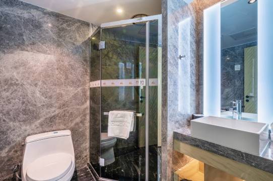 设施方面做得很到位,空调制冷快,热水供应稳定,洗澡水温调节顺畅。床头有多个充电接口,对离不开电子设备的人太友好了,而且配备的电视屏幕大、频道全,闲暇时看看很舒服。卫生间的干湿分离做得不错,洗漱台台面宽敞,细节处能感觉到用心。
