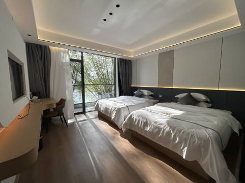 房间宽敞明亮干净整洁,带阳台风景尽收眼底,卫生间干湿分离,房间隔音也很好,老板热情做的菜非常好吃,价格实惠,车就停在酒店门口,酒店位置优越就在桥边,竹筏一次30元,晚上6点以后免费进景区游玩,景区里非常漂亮。