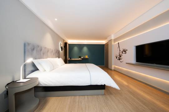 当我进入大厅的时候就已经是眼前一亮了 独特的设计风格 漂亮的前台小姐姐 都让我瞬间心情舒畅 前台小姐姐说话非常温柔 办理入住也快 楼道有钢琴音乐 一点都不俗 进入房间更是没得挑剔 干净卫生 房间还有咖啡 茶包 矿泉水 都是免费的 还有一次性洗脸巾 配备齐全 我真心推荐入住 酒店位置也不错 离家具城近 也都是餐厅 都可以不用开车 酒店早餐种类也非常丰富 很多好吃的 真是一家来了就爱上的酒店 给每一个服务人员点赞 可以只记得拍大厅了 下次还来!👍👍