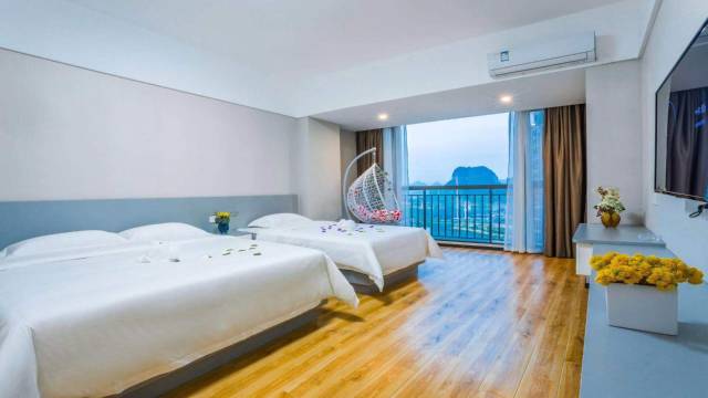 酒店位置很好,去哪都挺方便的,桂林风景美,入住的酒店有洗衣机,冰箱,挺方便的,前台小叶姐姐服务态度特别棒,湖景房很漂亮,周边吃的东西挺多的,很方便,经济实惠,房间也比较舒适,卫生干净,满意