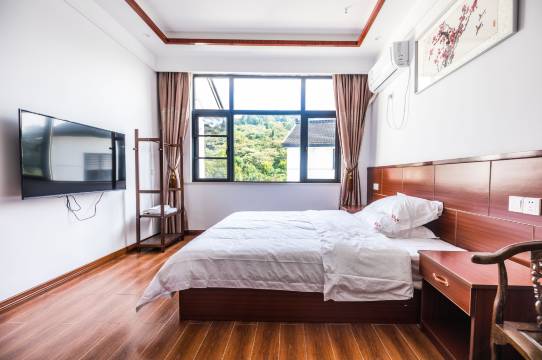 酒店在村落后排,从窗外能看到郁郁的山色,房间特别安静,村里的临湖房间都临马路边的,会有些嘈杂。