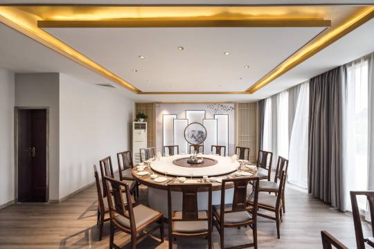 山庄附设环境优雅、提供纯正徽菜的餐厅,可同时容纳百余位宾客就餐;还设有小型会议室,可容纳30余位宾客进行商务会议。