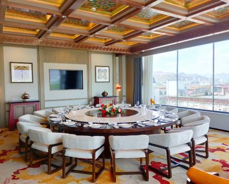 酒店餐饮部设有各种大小包间14间、并邀名厨主理,提供中餐、藏餐、粤菜、川菜等各种美味佳肴服务,使您在尽情享受美食乐趣的同时还可享受到西藏特有的民族献歌服务。