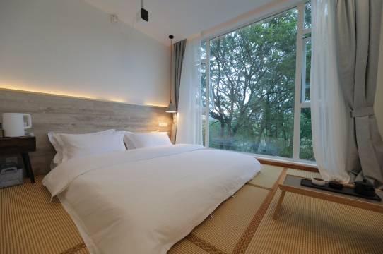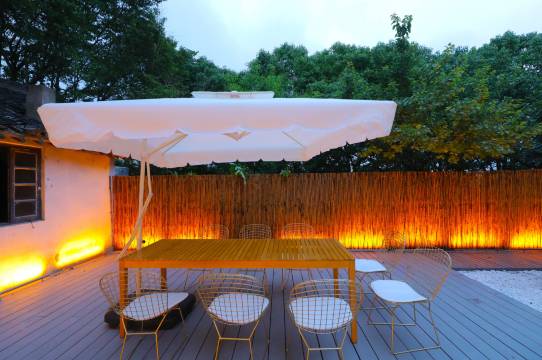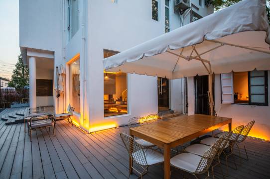 独立的整栋花园别墅,带些徽式的装修风格,配备建筑师精心设计的景观,好像能唤起每个人内心深处对田园的向往。微风吹起纱幔,落地窗外,是一片绿意盎然(大窗房)远离城市的喧嚣,时间也慢了下来。沏一杯香茗,捧一本好书,感受游离在上海快节奏之外的惬意。在晚上,还可以跟你的朋友一起数星星,听蛙鸣,或是同赏迪士尼升起的烟火。民宿配合贴心的接送服务,让你的迪士尼之行变得从容不迫。清爽简约的风格,略去复杂撞色带来的审美刺激,让你回归对居住的最本源感知。