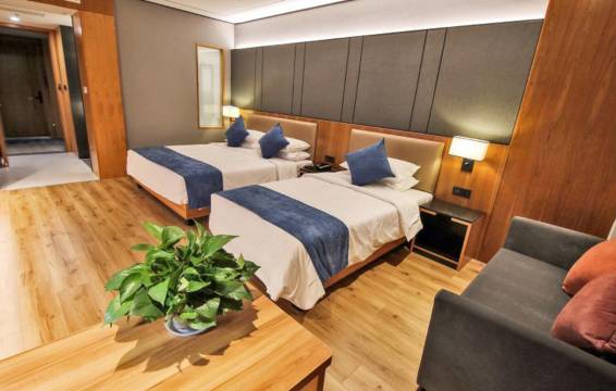 由于是半夜换的酒店,所以急急忙忙办理入住。首先进房间环境不错,很宽敞,智能设施不错,智能窗帘[强],开门,免打扰都能电子提现在门牌上,很不错。两张床很大,适合一家四口都行,哈哈。床睡上去也不错,不软不硬,正好[嘿哈]~(¯▽¯~)~洗漱地方也很大,浴室和厕所干湿分离不错,唯一不好点就是我们住的那个房间为什么浴室的门关不拢,哈哈哈有很大缝隙,洗澡往外漏水,这点让我很不满意。其他都还行。我们升级了免费延时到下午两点,一觉睡醒无人打扰哈哈。楼下还有停车场,地面地上也有,离开时酒店会让你扫码免费停车。