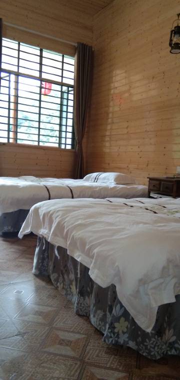房间隔音效果非常好,旁边有一条小溪,潺潺流水,很是浪漫,开门能闻溪水声,关门立马就安静了。夜间观星赏月别有一番风味。此地离三分石很近。这的菜也很特别,酿豆腐味道独特,红薯叶也是甜的,价钱不贵,甚至比别的地方还便宜点,老板很是亲和。来的路虽然三路十八弯,但也还算宽敞,而且是水泥路面,路况很好,会车也不难。最重要的是,房间价格便宜,宽敞,干净,安静,比住城市里有意思,值得体验一下。