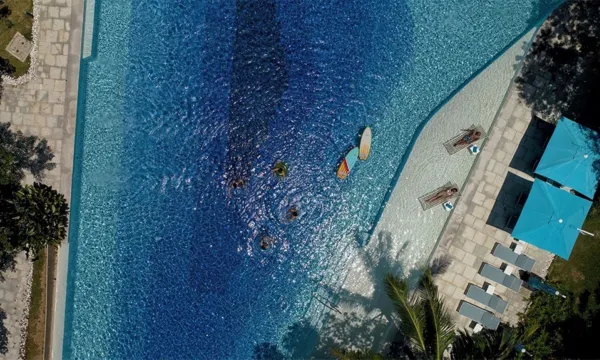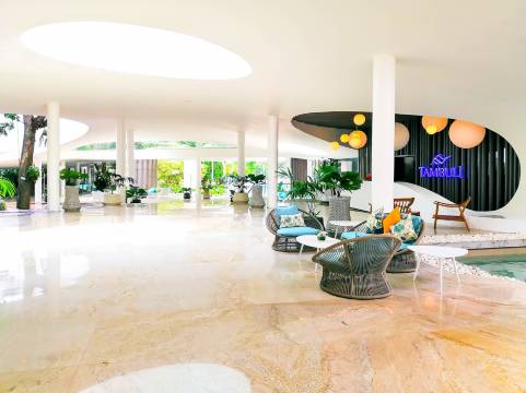 Tambuli 酒店就像城中的一片森林,动植物繁茂,泳池是泻湖式的,设计感十足,让人身心放松。