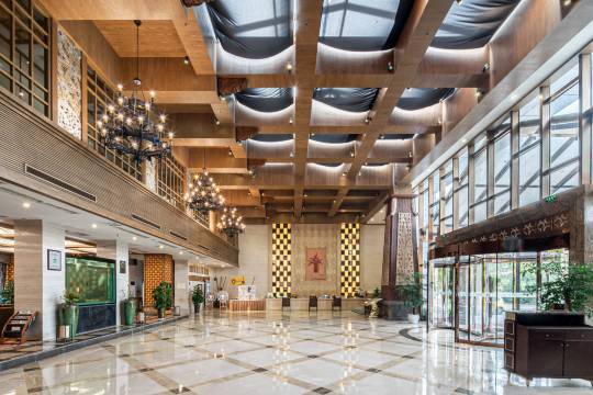 是和朋友坐高铁一起来的,没想到离定的酒店那么近,走路也不到10分钟而已。对了,背后就是融创非常近,我们就是准备歇一晚第二天滑雪。酒店虽不是很新,但是配套比较齐全。进门两侧就是前台和礼宾台,可以直接办理预约入住,服务员非常耐心和礼貌。另外和我朋友都觉得大堂非常漂亮,层高很高,很有气势。房间进去很干净,有赠送咖啡包茶包,很nice。放了行李就去前台推荐的网红打卡点玩到晚上才回店休息,一路很充实。因为我俩睡眠不好,选酒店先考虑安静,这个酒店晚上睡觉很安静,真的对浅睡眠人群很友好。以后再来😁✌️