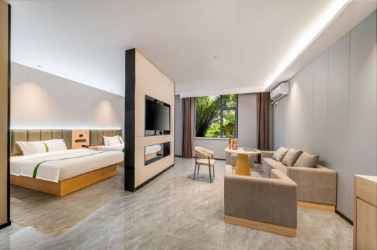 房间是智能的,在公园里面很干净也很安静,给前台点个大赞,服务很贴心,入住的时候提前帮我们开了空调,半夜帮我们送指甲刀,下次路过还来住
