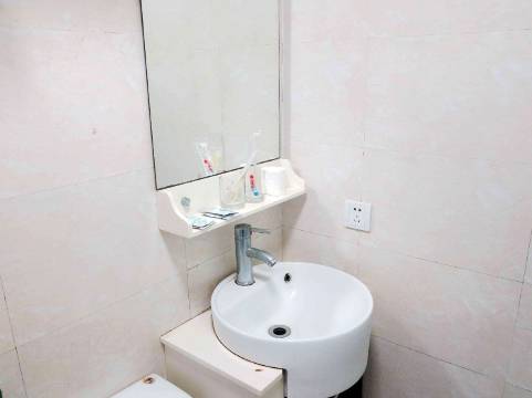 房间床铺干净,没有一次性拖鞋,有牙刷牙膏、纸巾等。热水很冲,挺好的