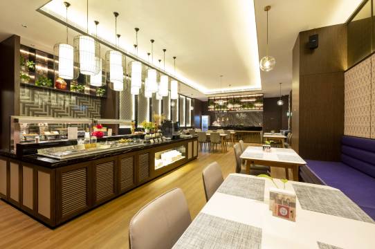 交通很方便,附近有地铁站,门口打车也方便,早餐品种多,晚上外面的夜景还不错,卫生方面做得还算干净,总体服务不错。
