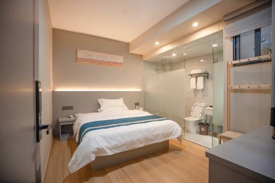 房间干净整洁,床品舒适,空调制热效果挺好的,门口停车也方便,一个人出差住性价比很高!