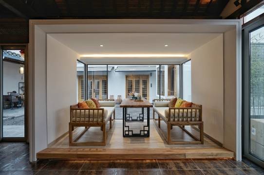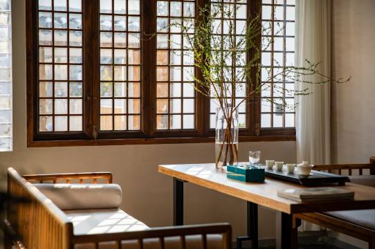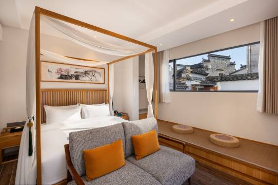 民宿共有8个房间,茶室、休闲吧及徽式庭院,每间房都保持了徽州建筑文化特点,古雅舒适。国际品牌TOTO洁具、佰草集洗漱用品及美国床垫床品,又满足现代人的生活习惯,而大幅落地玻璃窗将粉墙黛瓦马头墙纳入你的眼帘,仿佛穿越回到百年前辉煌的古徽州。体验“一生痴绝处,无梦到徽州”的心境。