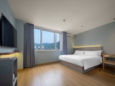 房间整体也很不错,下地铁站走几百米就到了,非常的便利,离付家庄非常的近,就隔了几公里,打车10块钱左右就可以去看日出,走路也就一个小时不到。我订的房间是商务标准房,房间虽然有点小,但一个人住完全够了,唯一有点遗憾的是浴室没有完全的干湿分离,少了一点隔间,洗澡的时候水会溅到马桶那一侧的地面。不过整体而言还是非常的棒,室内温度呀,各种都很可以。在酒店点外卖服务非常到位,有机器人可以送到房间门口,但是机器人有可能会有一点点失控。我点了两次外卖,都出现了一点小波折,但是最后都成功的送到了。