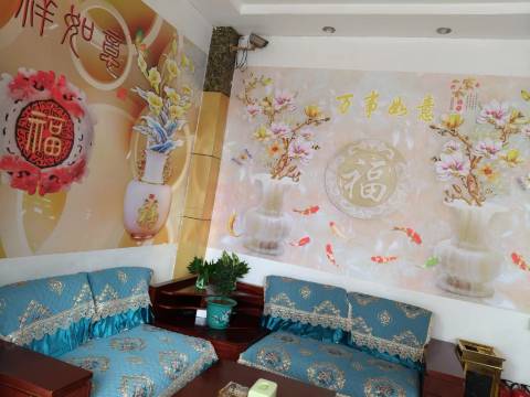 这家店服务很热情,,卫生也做得不错,就在十字路口,交通还可以,价格实惠,周围吃的要走一里路左右,房间布置很喜庆