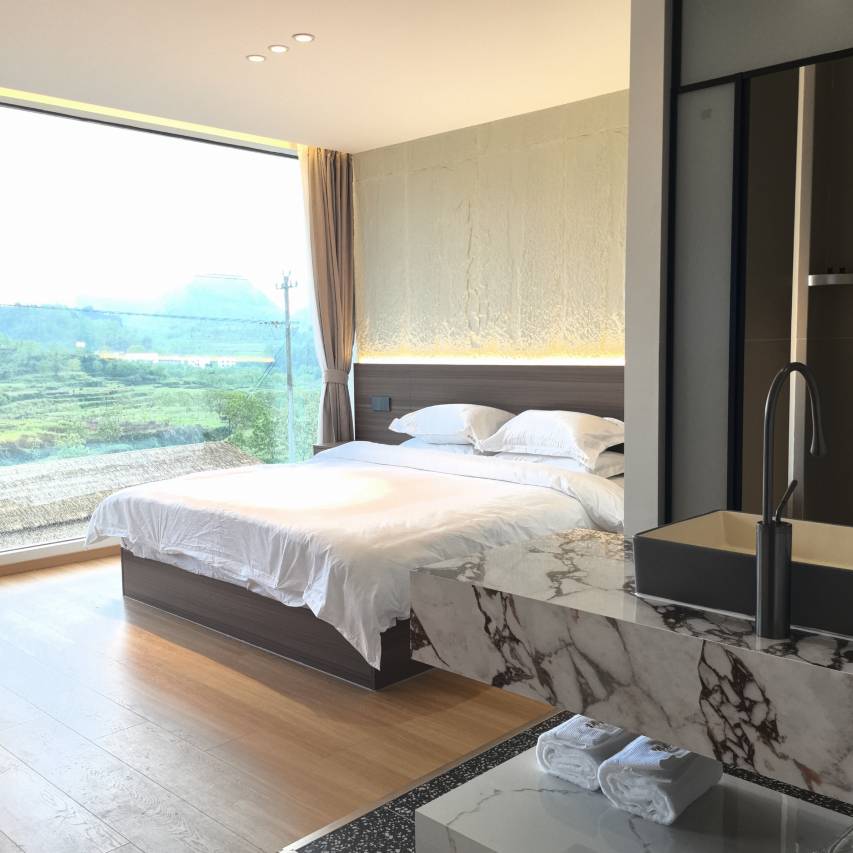 尘外朴宿——隐逸山野的诗意栖居,坐落于山坳、溪畔古村处,视野无现代建筑干扰,客房推窗即见山景,庭院内保留原生植被,天然水系引流,融合传统与现代的独特设计,打造温暖如家的居住体验,这里山河静谧广阔,暂别城市的喧嚣,民宿以“尘外”为主题,保留了传统老房子的木质结构,搭配现代简约的装饰风格,每个房间都融入自然元素,如原木家具、艺术墙、落地窗、洞穴风,每一间都是精心设计个性化打造。民宿周边有徒步小径、清澈溪流,梯田,距离家朋古村落仅5分钟车程,