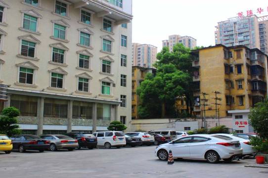 酒店闹中取静,是个老三星宾馆,设施虽旧,但维护还不错,设施齐全,干净卫生,工作人员服务态度很好。有很大的停车场,停车方便。