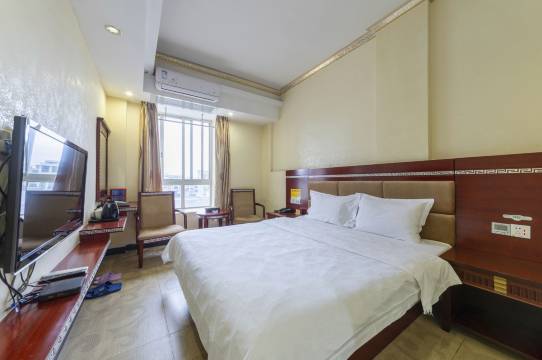 肇庆肇庆新尚海酒店 新尚海酒店是一家现代化商务酒店,2015年4月酒店增加中餐服务,暂时经营中午晚餐,以农家菜为主。客房设有江景房和城景房两种客房。酒店位于县城沿江西路饮食一条街中心,矗立在怀集城区风景秀丽的绥江河畔,毗邻怀集县政府、怀集县行政管理中心等,距汽车总站10分钟车程,交通十分便利。现代化网络信息配置,每个房间独立无线WIFI宽带上网,国内长途电话,39寸大屏液晶高清电视。