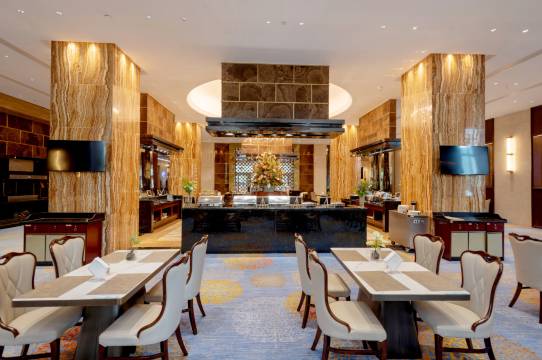 酒店有时尚的中餐厅,精致的格林菲特西餐厅,舒适典雅的茶艺,豪华的宴会包房,华贵的宴会大厅,还配有会议报告厅、高级宴会厅、贵宾接待厅、多功能会议厅等各类专业行政会议厅7个,设备齐全的康体中心、器械房、飞镖室、桌球室等娱乐设施给您丰富的娱乐体验。