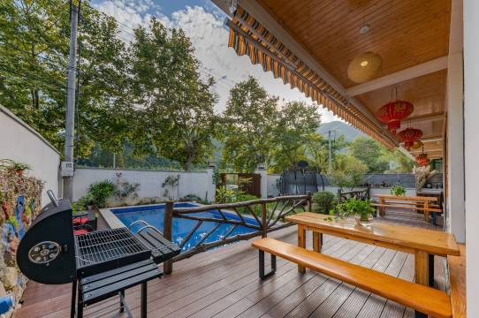 位于莫干山风景区山脚下,周边环境清幽,背靠青山面向溪流,炎炎夏日,这里依然清凉舒适。周末约上三五好友去挖笋 烧烤 钓鱼 爬山 ……是最惬意的休闲方式。周边景点:莫干山风景区 骑马 小火车 魔方乐园 民国风情街 碧坞龙潭 漂流等。 民宿有多种房型,每个房间都有独立的阳台和独立的卫生间,可以私享独处空间不被打扰。公共区域有棋牌室,榻榻米地台,大客厅,游泳池,桌游,台球,游戏机等,让您足不出户就能享受慢时光。酒店附近有配备新能源充电桩,让你的爱车免去没地方充电的烦恼!