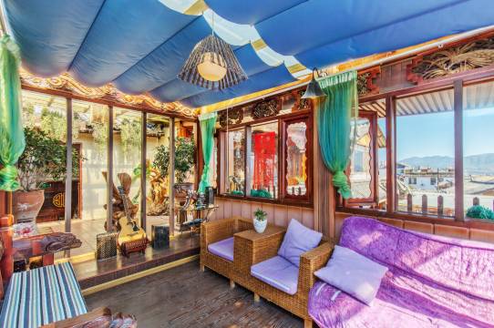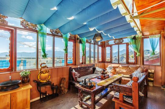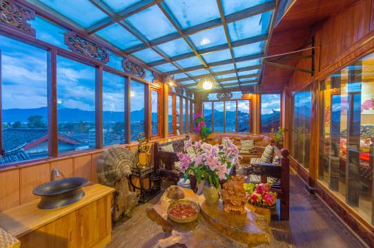 这里拥有古色古香的居住环境、丰富多彩的公共场所、细致周全的管家服务;为您带来绿意浓浓的庭院、幽雅精致的廊道、整洁安静的房间、能将古城美景尽收眼底的顶楼休闲小站等……在这里,你可以荡秋千、烤太阳、赏花、看鱼儿戏水、品纳西小吃、下棋搓麻;也可在顶楼远眺古城全景、围着火塘取暖、聊天,尽享丽江特有的安逸和美好。