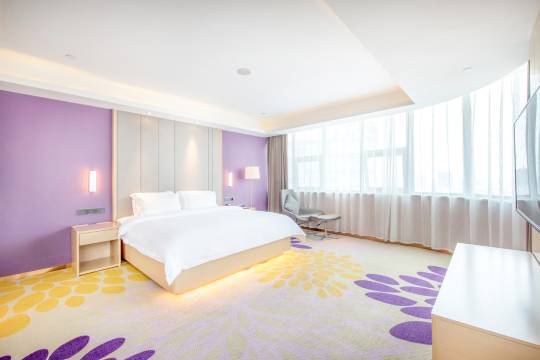 酒店地处繁华的百伦广场,旁边就是夜市街,对面就是房湖公园,不过最近在打围修缮,只能拍个雒城老城门夜景超美,前台接待服务态度很好,贴心给升了房间,房间设施很新,宽敞舒适,紫色的地毯配紫色的墙画,色调很高级