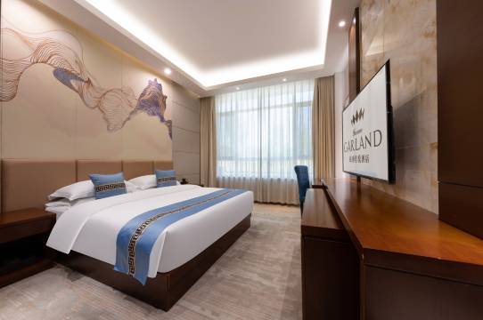 房间布置得格外精致,整洁舒适的床铺仿佛在召唤着疲惫的旅人投入它的怀抱。每一个细节都处理得恰到好处,从柔软的抱枕到精致的装饰画,无不彰显着酒店的用心。