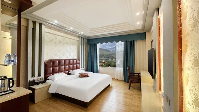 房间干净整洁,热水充足,布草全是新的,拉开窗帘就可以看到延绵不断的雪山。酒店有自己的停车场,方便自驾游者,价格便宜,值得推荐。前台小姐姐推荐的旅游景点真的超出片