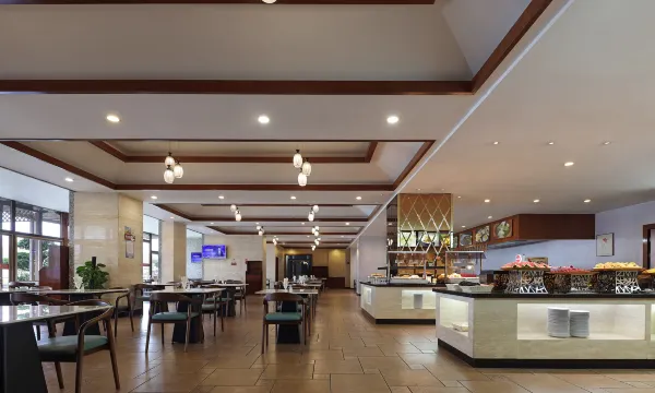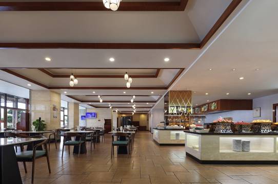 酒店拥有不同规格的多功能厅、中式包厢和西餐厅,餐位约一千个。多功能厅配LED显示屏和灯光音响设备,满足宴会和会议的各项需求;中式包厢汇聚闽菜、粤菜和本地客家菜等菜系,为八方宾客提供完美的舌尖体验;西餐厅以休闲、时尚、优雅风格为主,主营自助餐,结合中、西餐菜肴,是情侣约会、家庭或朋友聚会的**去处。