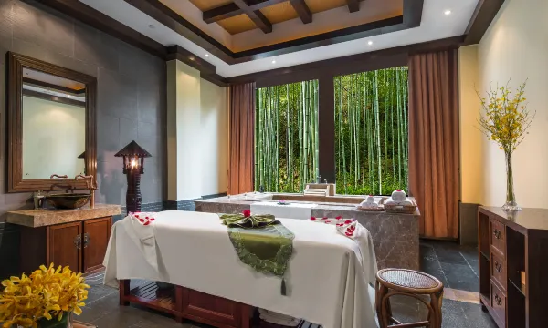 酒店地处长三角的中心地带,依山傍水。南山一隅,35000亩秀美竹海,露天温泉,千年古树见证历史轮回,万亩竹林缔造天然氧吧。